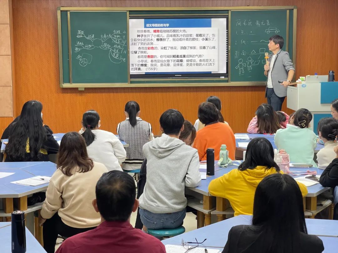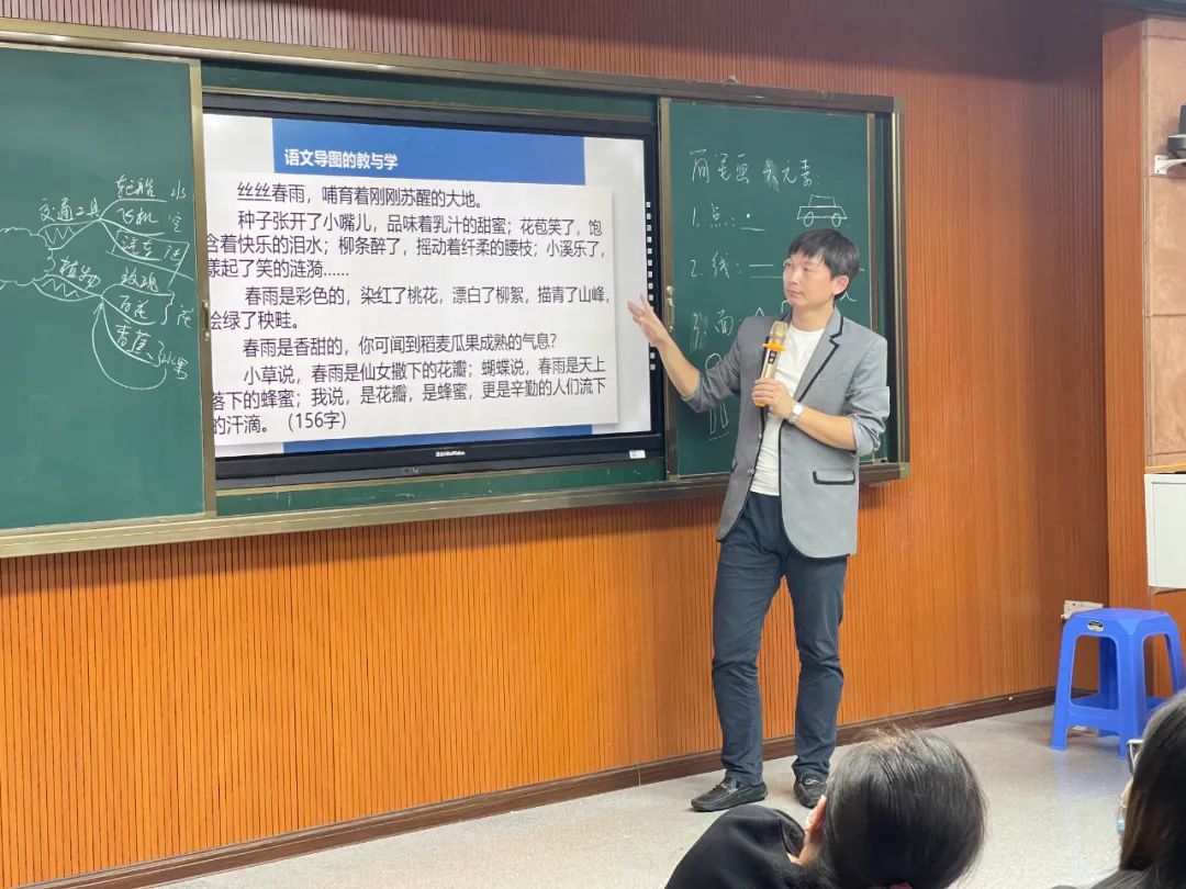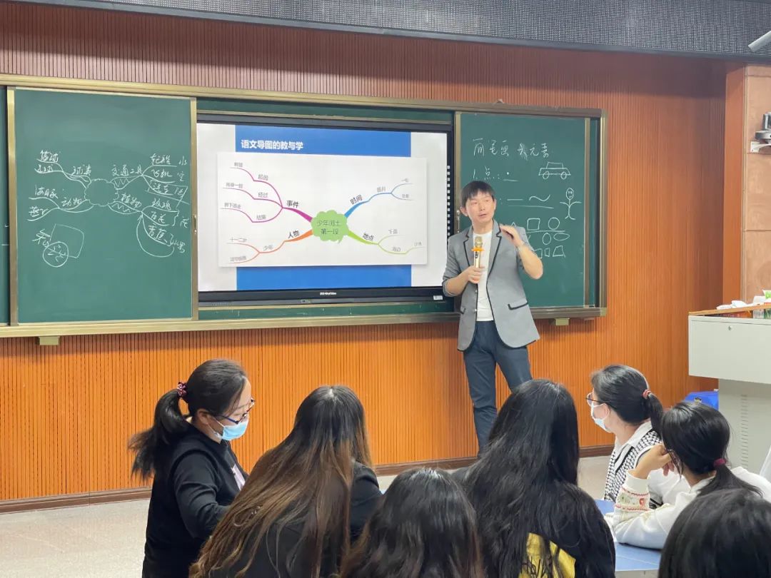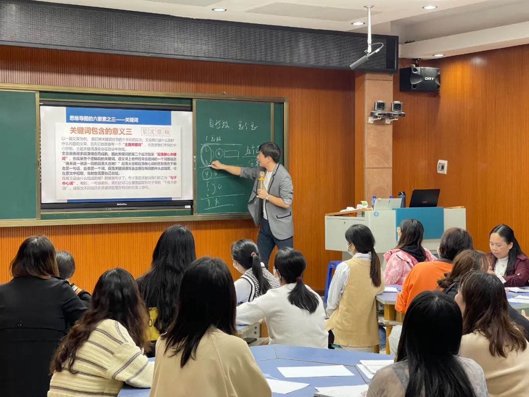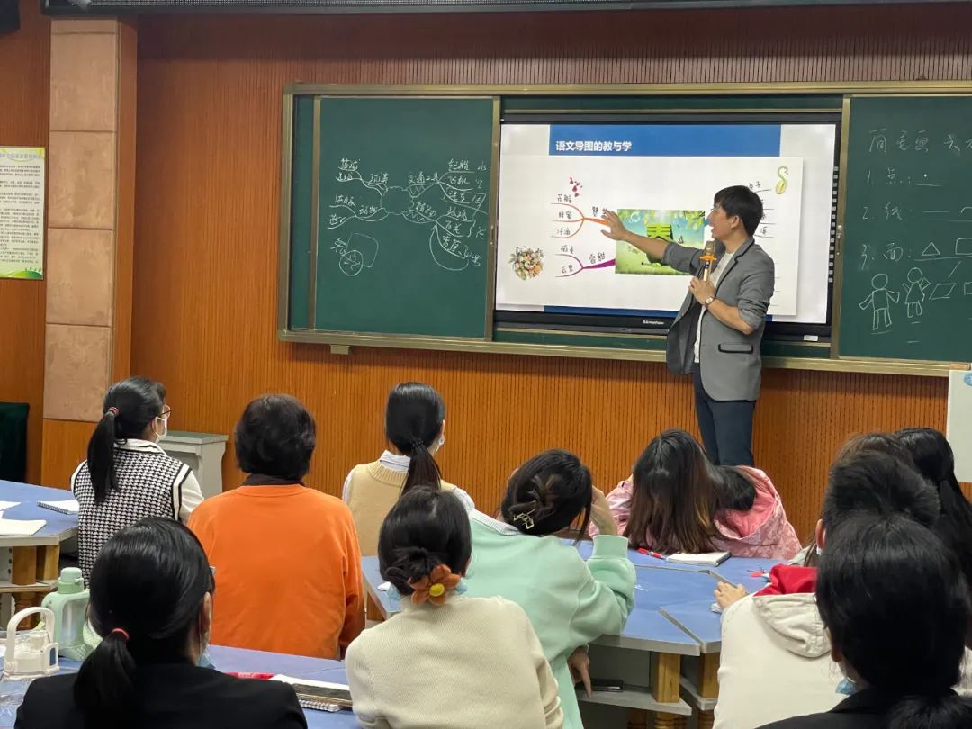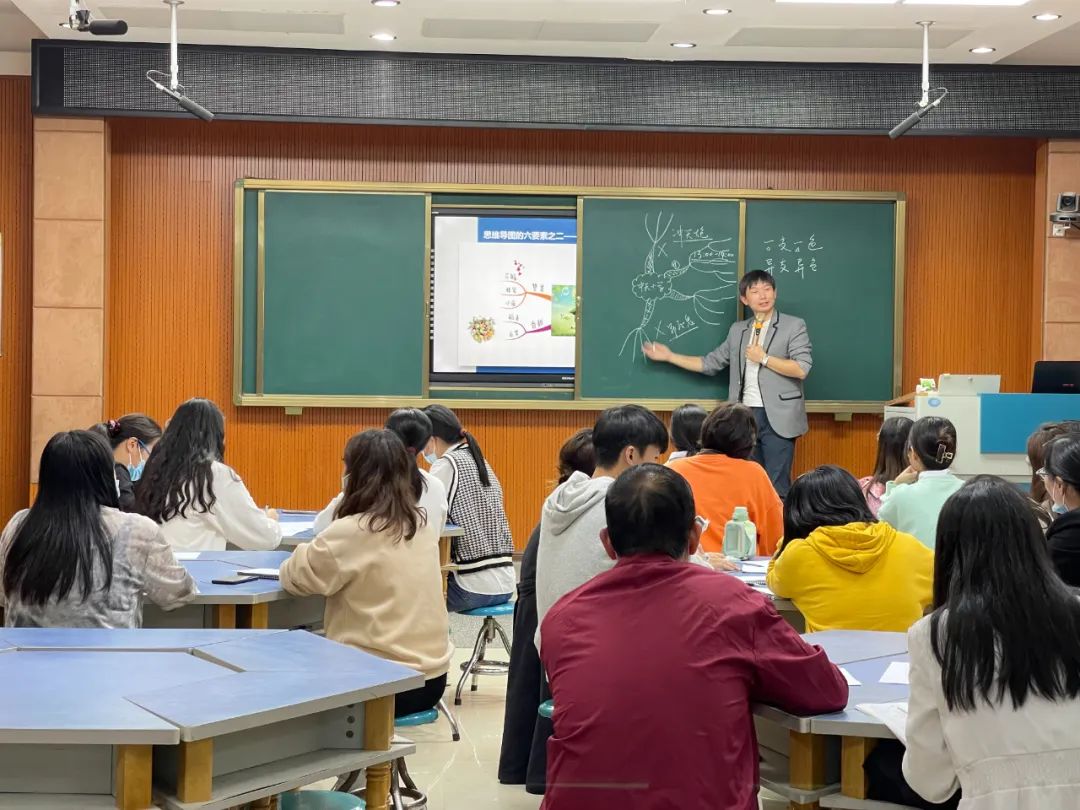 最后,詹老师给在场的语文老师们讲解了思维导图在教学实践中的应用,通过几篇小学中常见的课文段落为例子,详细的讲解了如何应用思维导图在教学实践中,思维导图是如何在教学实践中提高教学效率的。