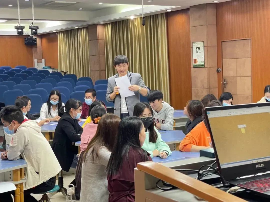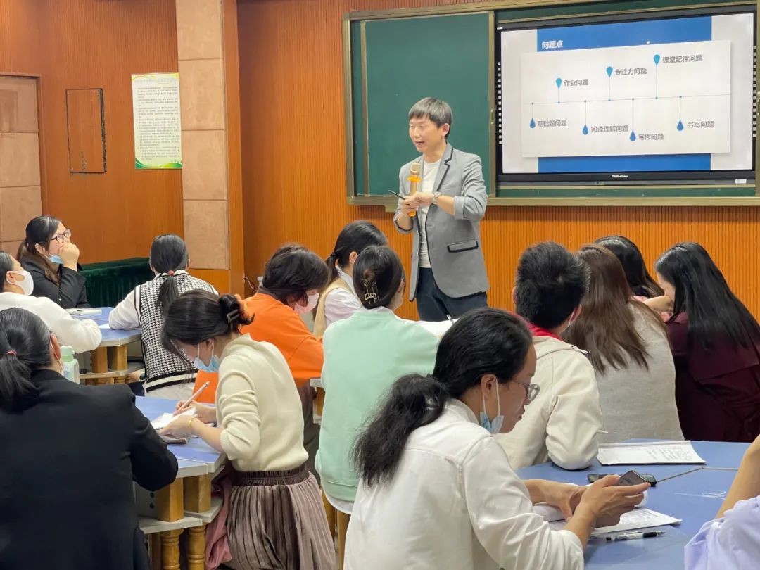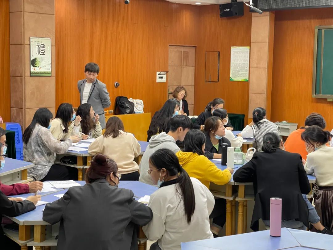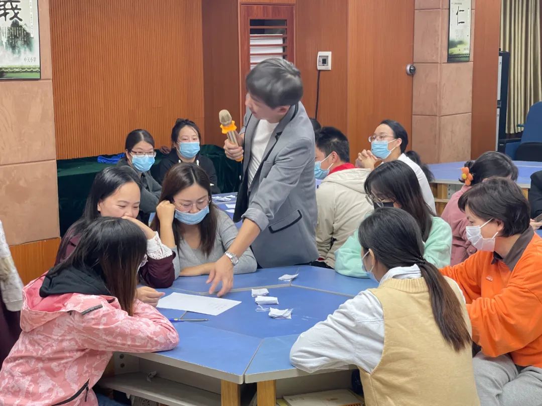 晚上的课堂刚开始,詹老师先是把下午老师们在小纸条写出的教学问题进行了归纳分类,并呈现在各个老师面前,让他们自己说出所写的问题属于哪一大类,期间老师们积极讨论,课堂氛围活跃。