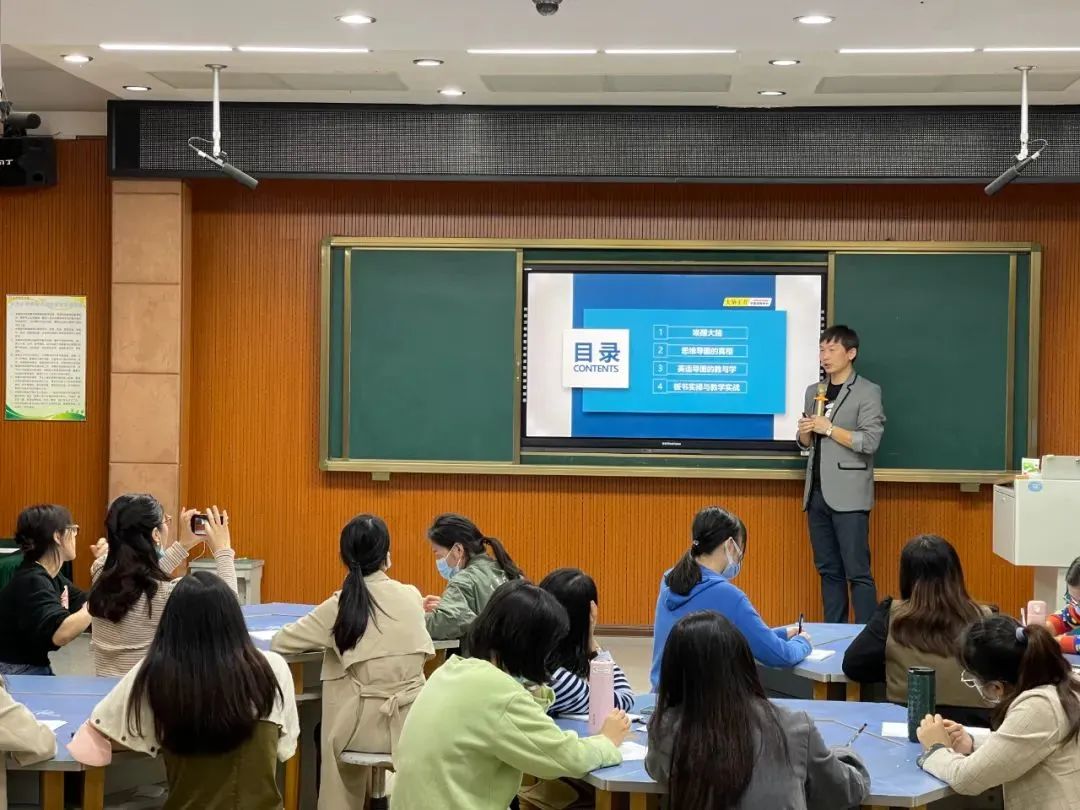 经过短暂的休息,海波老师继续给老师们授课,晚上课程的主要内容是“思维导图在英语学科中的教与学”。