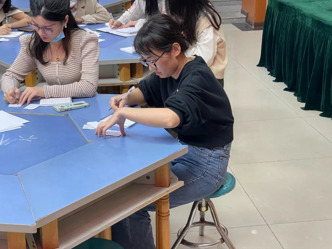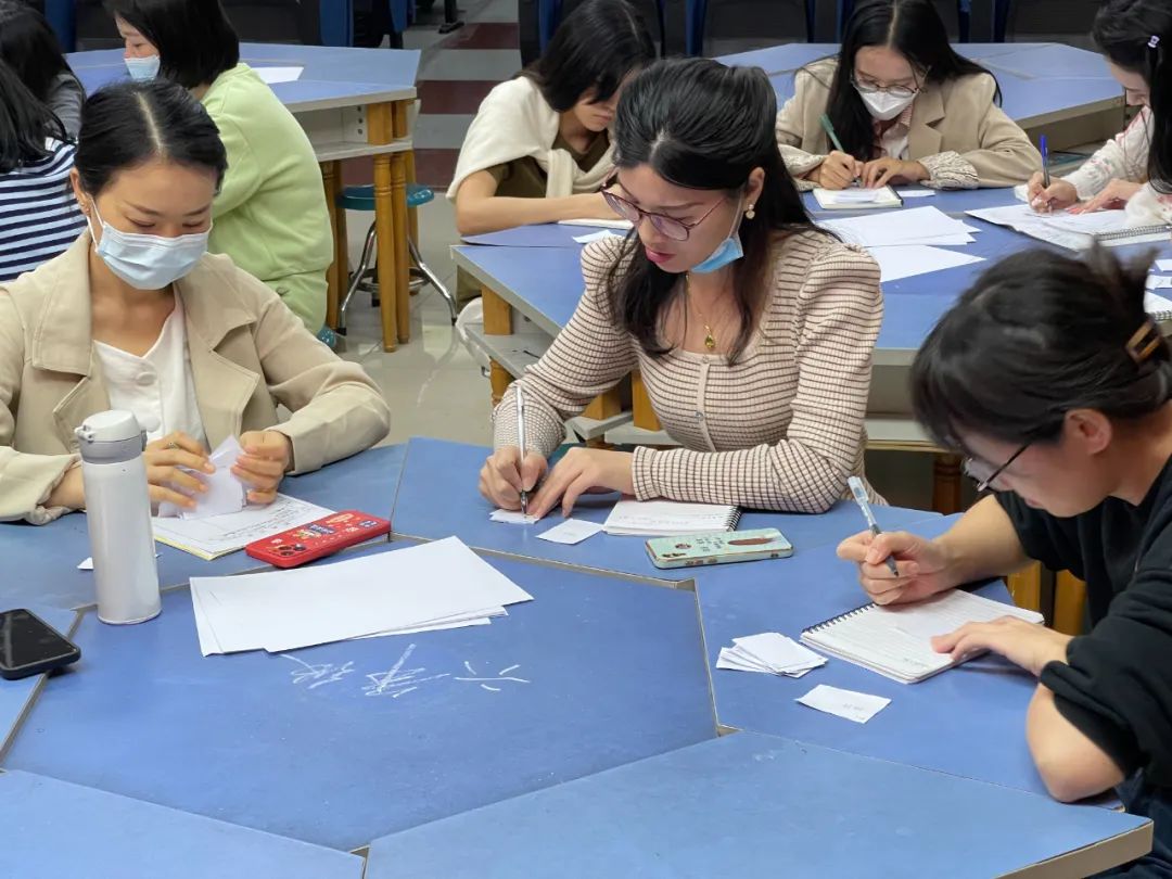 简单的游戏过后,海波老师还是先通过让老师们写小纸条的方式收集到了老师们对于英语教学中所遇到的问题和困难。正如海波老师之前所了解到的一样,英语课的教学时常短,教学任务重让在座所有的英语老师都为之头痛。